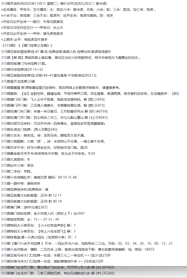 315期:前后肖必中【后肖后肖开:0000准
