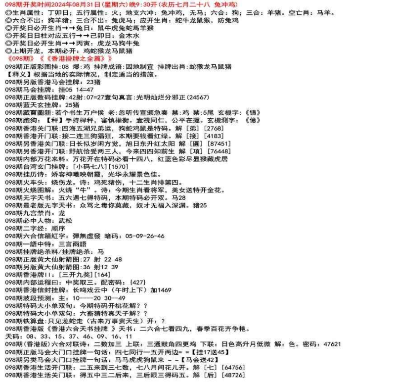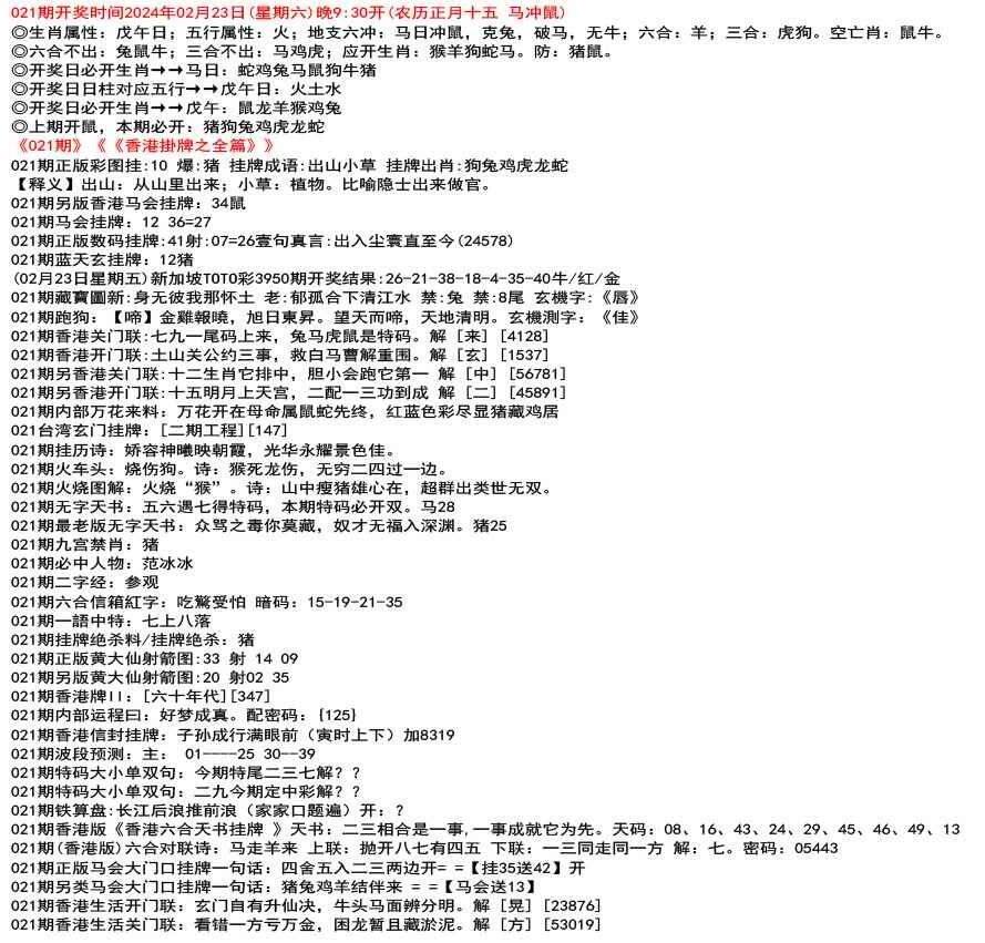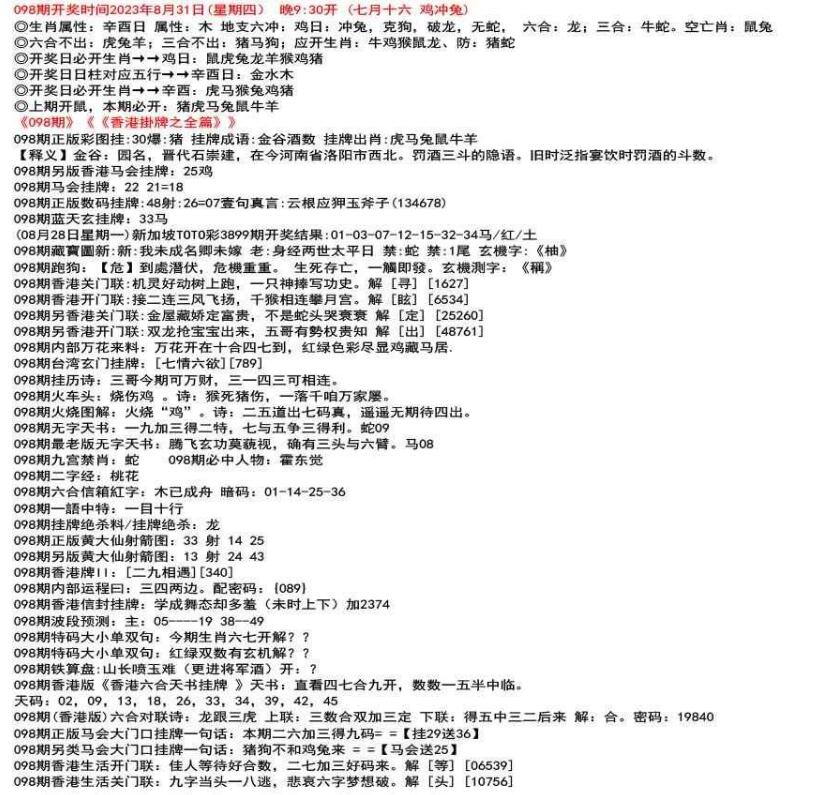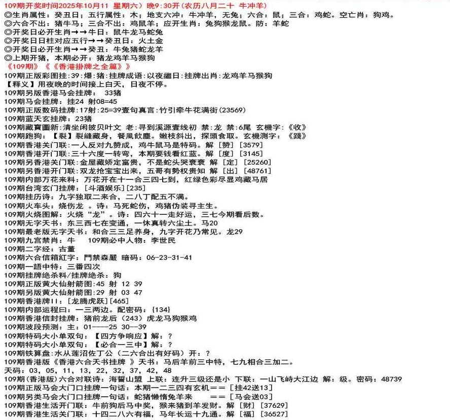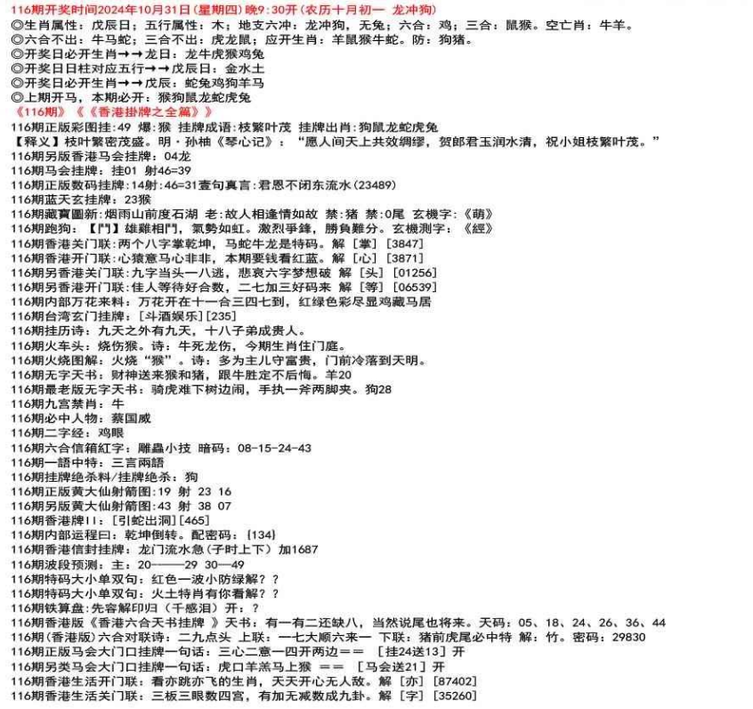 111期开奖时间2022年12月29日(星期四) 晚9:30开 (腊月初七 龙冲狗)