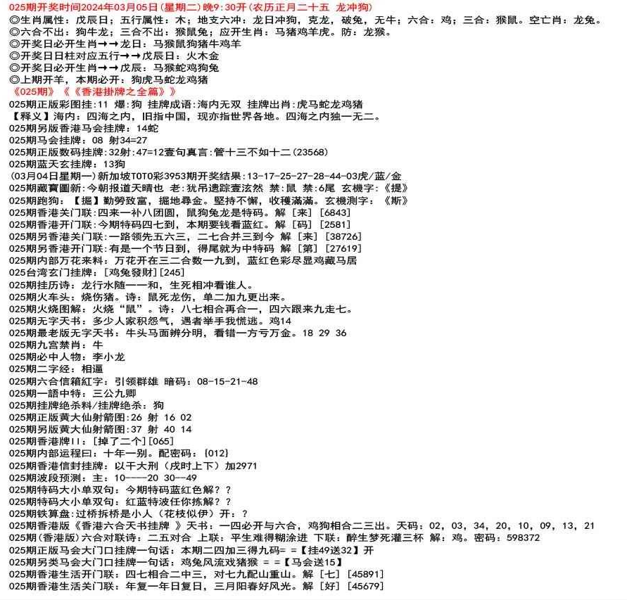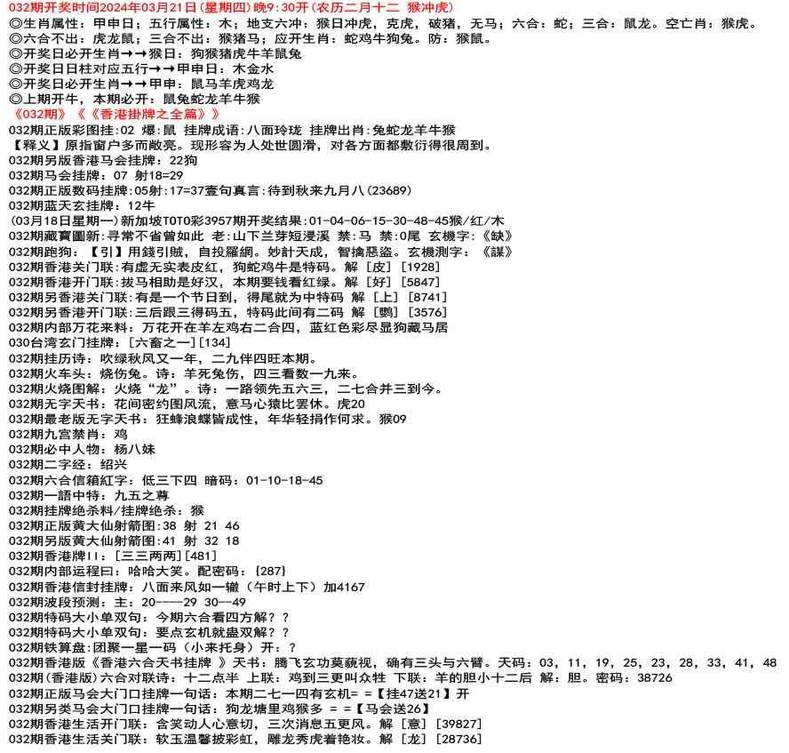 (12月26日星期一)新加坡TOTO彩3829期开奖结果:03-10-31-32-44-47特41狗/蓝/水