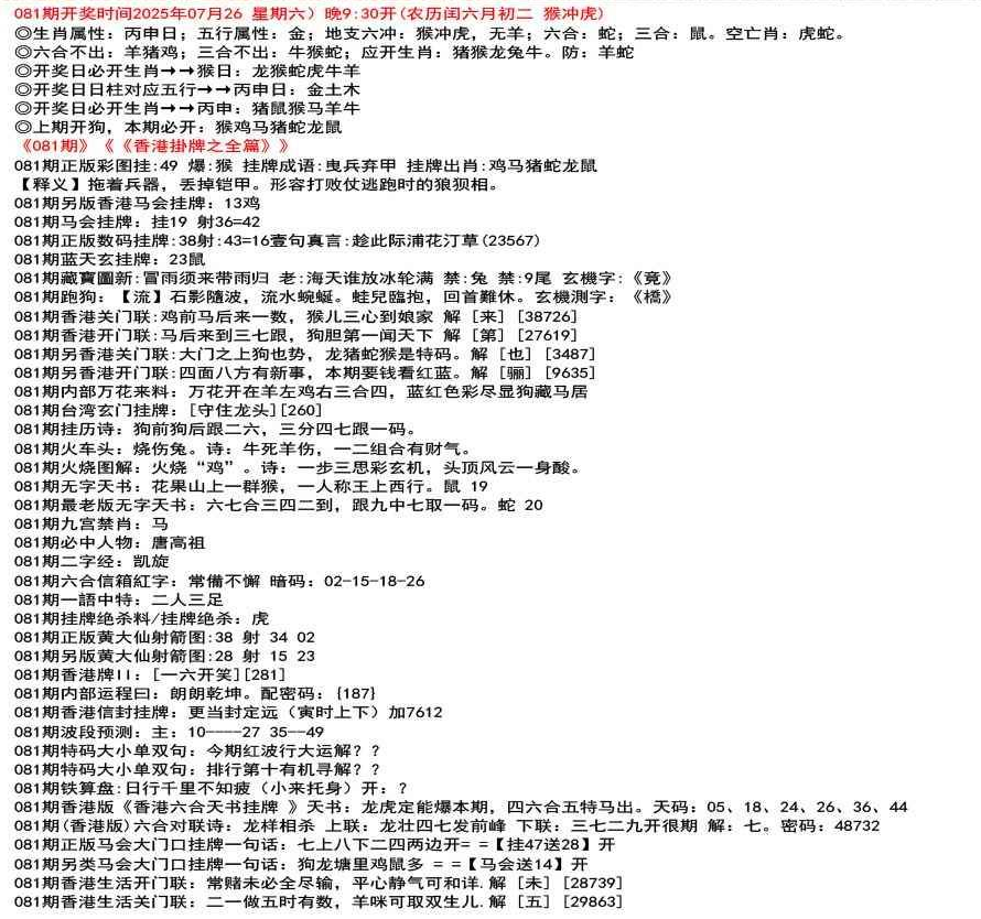 111期香港生活关门联:鸡前马后来一数,猴儿三心到娘家 解 【来】【38726】